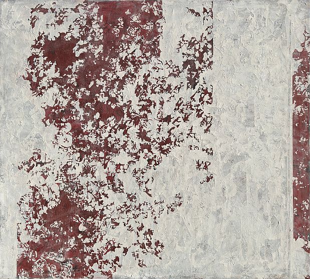 Natural pigments and fresh raspberries, as they dry, leave permanent traces on canvas or plexiglas, making the passage of time visible. Through the degradation of the raspberries — symbols of fertility and abundance — matter transforms, generating a sense of fragility and transience.
